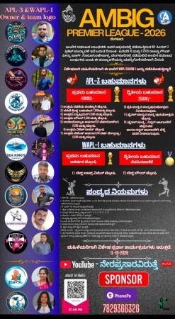 ಅಂಬಿಗ್ ಪ್ರೀಮಿಯರ್ ಲೀಗ್–2026: APL–3 ಮತ್ತು WAPL–1 ಟೂರ್ನಿ