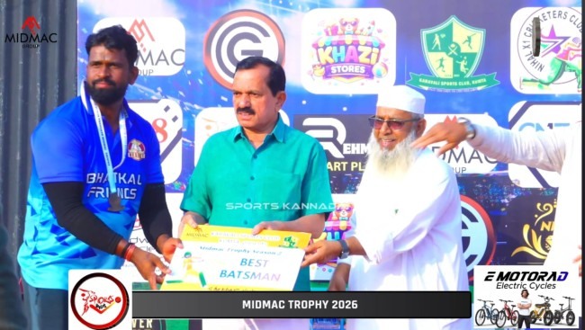 ಕರಾವಳಿ ಸ್ಪೋರ್ಟ್ಸ್ ಕ್ಲಬ್ (ಕುಮಟಾ) ವತಿಯಿಂದ ಆಯೋಜಿಸಲಾದ MIDMAC ಟ್ರೋಫಿ ಸೀಸನ್–2 ಟೂರ್ನಿಯ ಫೈನಲ್ ಪಂದ್ಯದಲ್ಲಿ ಭಟ್ಕಲ್ ಫ್ರೆಂಡ್ಸ್ ತಂಡವು ನಿಹಾಲ್ XI ತಂಡದ ವಿರುದ್ಧ ಶಕ್ತಿಶಾಲಿ ಪ್ರದರ್ಶನ ನೀಡಿ **50 ರನ್‌ಗಳ ಭರ್ಜರಿ ಜಯ** ದಾಖಲಿಸಿ ಪ್ರಶಸ್ತಿಯನ್ನು ತನ್ನದಾಗಿಸಿಕೊಂಡಿತು.