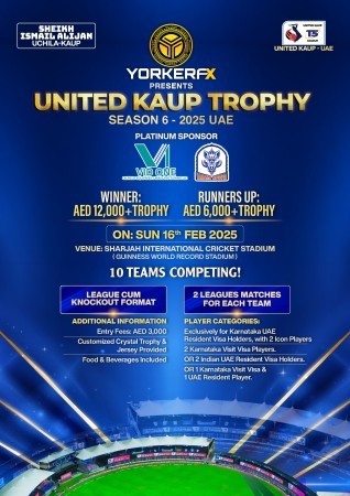 ಶಾರ್ಜಾ ಅಂತರಾಷ್ಟ್ರೀಯ ಸ್ಟೇಡಿಯಂನಲ್ಲಿ ಸೌಹಾರ್ದತೆಯ ಕ್ರಿಕೆಟ್ ಹಬ್ಬ-ಯುನೈಟೆಡ್ ಕಾಪು ಟ್ರೋಫಿ-2025