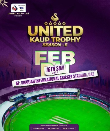 ಟೆನಿಸ್ಬಾಲ್ ಕ್ರಿಕೆಟ್ ಇತಿಹಾಸದಲ್ಲೇ ಮೊತ್ತ ಮೊದಲಬಾರಿಗೆ ಶಾರ್ಜಾ ಅಂತರಾಷ್ಟ್ರೀಯ ಮೈದಾನದಲ್ಲಿ ಕಳೆದ ಬಾರಿ ಕ್ರಿಕೆಟ್ ಪಂದ್ಯಾಟವನ್ನು ಆಯೋಜಿಸಿದ್ದ ಯುನೈಟೆಡ್ ಕಾಪು ಯುಎಇ ತಂಡ ಈ ಬಾರಿ ಸೀಸನ್ 6 ರ ಯುನೈಟೆಡ್ ಕಾಪು ಟ್ರೋಫಿ ಕ್ರಿಕೆಟ್ ಪಂದ್ಯಾಟ ಆಯೋಜಿಸಲು ಸಜ್ಜಾಗಿ ನಿಂತಿದೆ.