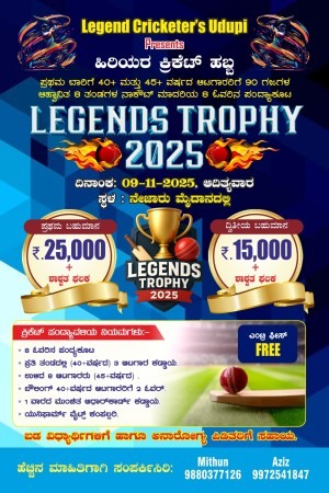 ಲೆಜೆಂಡ್ಸ್ ಟ್ರೋಫಿ 2025 – ಉಡುಪಿ ಕ್ರಿಕೆಟ್ ಅಭಿಮಾನಿಗಳಿಗೆ ಕ್ರಿಕೆಟ್ ಹಬ್ಬ
