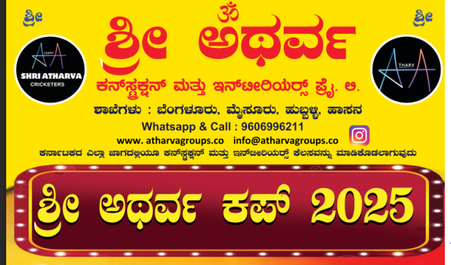 ಶ್ರೀ ಅಥರ್ವ ಕನ್ಸ್ಟ್ರಕ್ಷನ್ ಮತ್ತು ಇಂಟೀರಿಯರ್ಸ್ ಪ್ರೈವೇಟ್ ಲಿಮಿಟೆಡ್ ಸಂಸ್ಥೆ ಮತ್ತು ಶ್ರೀ ಅಥರ್ವ ಕ್ರಿಕೆಟರ್ಸ್ ಇವರ ಆಶ್ರಯದಲ್ಲಿ ಶ್ರೀ ಅಥರ್ವ ಕಪ್ 2025