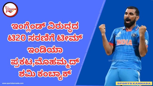 ಇಂಗ್ಲೆಂಡ್ ವಿರುದ್ಧದ ಟಿ20 ಸರಣಿಗೆ ಟೀಮ್ ಇಂಡಿಯಾ ಪ್ರಕಟ, ಮೊಹಮ್ಮದ್ ಶಮಿ ಕಂಬ್ಯಾಕ್