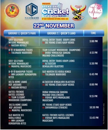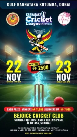 ಪ್ರತಿಯೊಂದು ಕ್ರಿಕೆಟ್ ತಂಡಗಳಿಗೆ ಕರುನಾಡಿನ ಪ್ರಮುಖ 16 ಸುಂದರ ಕ್ಷೇತ್ರಗಳ ಹೆಸರನ್ನಿತ್ತು ಆಯೋಜನೆಗೊಂಡಿರುವ 16 ತಂಡಗಳ ವಿನೂತನ ಕರ್ನಾಟಕ ಕ್ರಿಕೆಟ್ ಲೀಗ್ ಸೀಸನ್-2(KCL) ಪಂದ್ಯಾವಳಿಯು ಇನ್ನು ಎರಡೇ ದಿನದಲ್ಲಿ ಆರಂಭವಾಗಲಿದೆ. ನವೆಂಬರ್ 22,23ರಂದು ಶಾರ್ಜಾ ಬಿಜೋಯ್ಸ್ ಕ್ರಿಕೆಟ್ ಕ್ಲಬ್ ಮೈದಾನದಲ್ಲಿ ಕನ್ನಡ ತಂಡಗಳ ಕ್ರಿಕೆಟ್ ಜಾತ್ರೆ ಸಂಪನ್ನಗೊಳ್ಳಲಿದೆ.