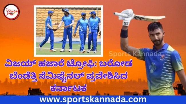 ಕ್ರಿಕೆಟ್ವಿಜಯ್ ಹಜಾರೆ ಟ್ರೋಫಿ: ಬರೋಡ ಬೆಂಡೆತ್ತಿ ಸೆಮಿಫೈನಲ್ ಪ್ರವೇಶಿಸಿದ ಕರ್ನಾಟಕ