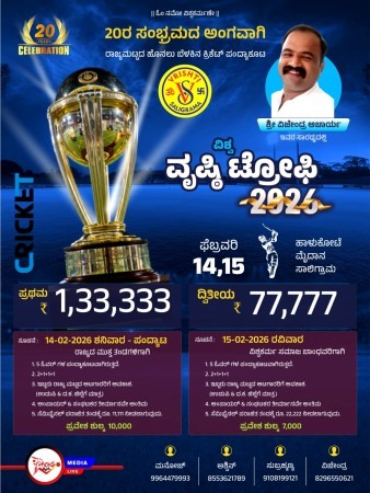 ಕ್ರಿಕೆಟ್20ನೇ ಸಂಭ್ರಮದಲ್ಲಿ ‘ವಿಶ್ವ ವೃಷ್ಟಿ ಟ್ರೋಫಿ 2026’ – ರಾಜ್ಯಮಟ್ಟದ ಫ್ಲಡ್‌ಲೈಟ್...