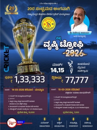 ಕ್ರೀಡಾಭಿಮಾನಿಗಳಿಗೆ ರೋಮಾಂಚನ ಮೂಡಿಸುವ ಕ್ರಿಕೆಟ್ ಹಬ್ಬಕ್ಕೆ ವೇದಿಕೆ ಸಜ್ಜಾಗಿದೆ. ಸಾಲಿಗ್ರಾಮದ ವೃಷ್ಠಿ (Vrishti) ಸಂಸ್ಥೆಯ ವತಿಯಿಂದ “ವಿಶ್ವ ವೃಷ್ಠಿ ಟ್ರೋಫಿ – 2026” ಎಂಬ ಹೆಸರಿನಲ್ಲಿ ಕ್ರಿಕೆಟ್ ಪಂದ್ಯಾವಳಿ ಮಾರ್ಚ್ 14 ಮತ್ತು 15 ರಂದು ಸಾಲಿಗ್ರಾಮದಲ್ಲಿ ನಡೆಯಲಿದೆ. ಸಂಸ್ಥೆಯ 20ನೇ ವರ್ಷದ ಸಂಭ್ರಮಾಚರಣೆ ಅಂಗವಾಗಿ ಈ ಪಂದ್ಯಾವಳಿಯನ್ನು ಆಯೋಜಿಸಲಾಗಿದ್ದು, ರಾಜ್ಯಮಟ್ಟದ ಹೊನಲು ಬೆಳಕಿನ ಪಂದ್ಯಾಕೂಟವಾಗಿರಲಿದೆ.